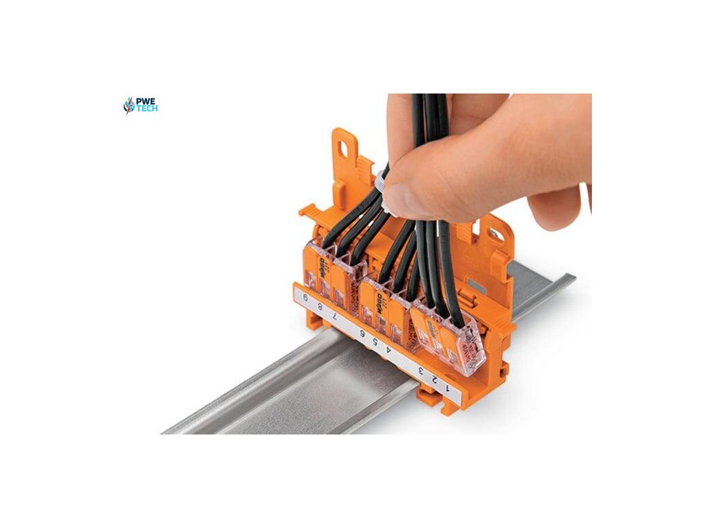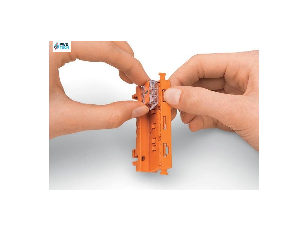 WAGO 221-500 je oranžový montážny adaptér (držiak) určený na upevnenie svoriek série WAGO 221 (4 mm²) na DIN lištu 35 mm alebo na rovný povrch pomocou skrutiek. e navrhnutý tak, aby pojal 2, 3 alebo 5-pólové svorky série 221 4mm2.
