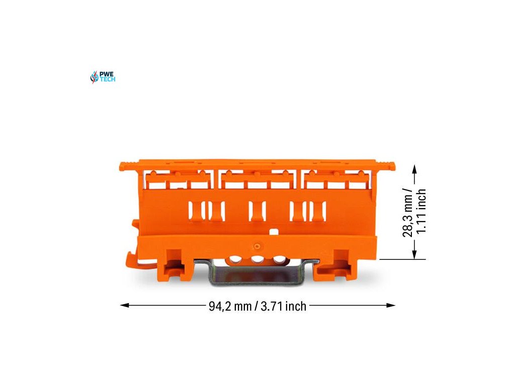 Adaptér na DIN lištu WAGO 221-510 pre WAGO 221 2x, 3x, 5x 6mm2 oranžový