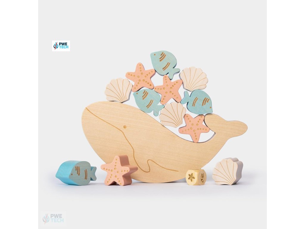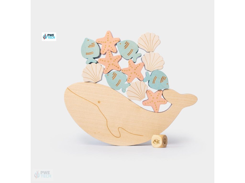 Balančná drevená veľryba je vzrušujúca hra pre malých prieskumníkov a ich rodičov. Hráči ukladajú morské poklady - mušle, hviezdice a veľryby tak, aby nespadli a nestratili morské poklady.