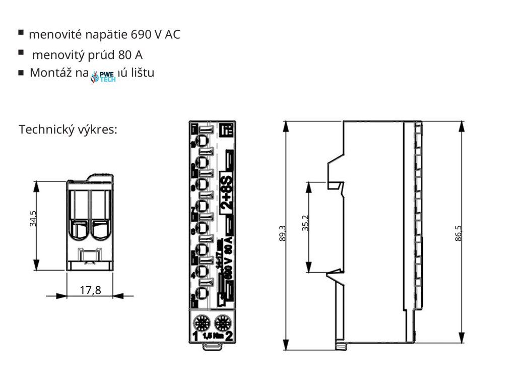 Vstup : 2 x skrutková svorka do 16 mm2 plus 8x bezskrutková svorka do 6 mm2. (uvedené prierezy platia pre pevné vodiče)