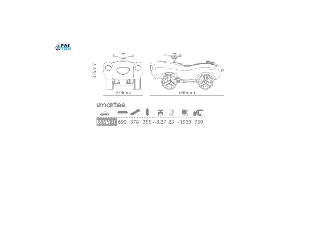 Detské Odrážadlo autíčko SMARTEE šedé BSMART-432C