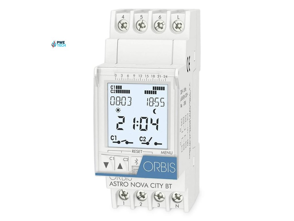 ORBIS Digitálne astronomické spínacie hodiny ASTRO NOVA CITY BLUETOOTH 230V, 16A, 2x NO/NC na DIN lištu 2102113
