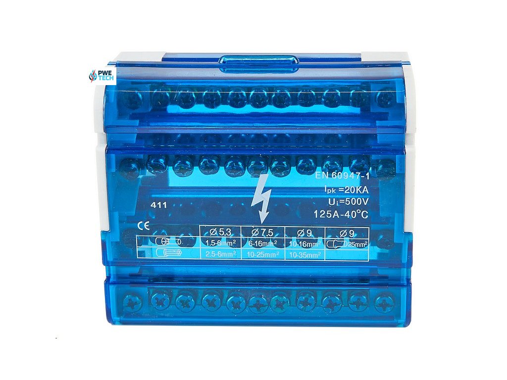 Prúdové lišty sú integrované do vnútorného priestoru rozvodných blokov. Montážne otvory rôznych priemerov umiestnené na lištách umožňujú bezproblémové pripojenie silných aj tenkých vodičov.