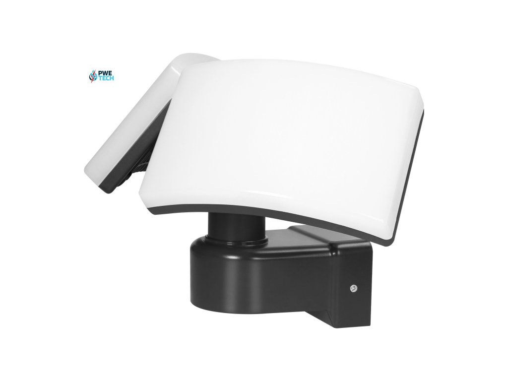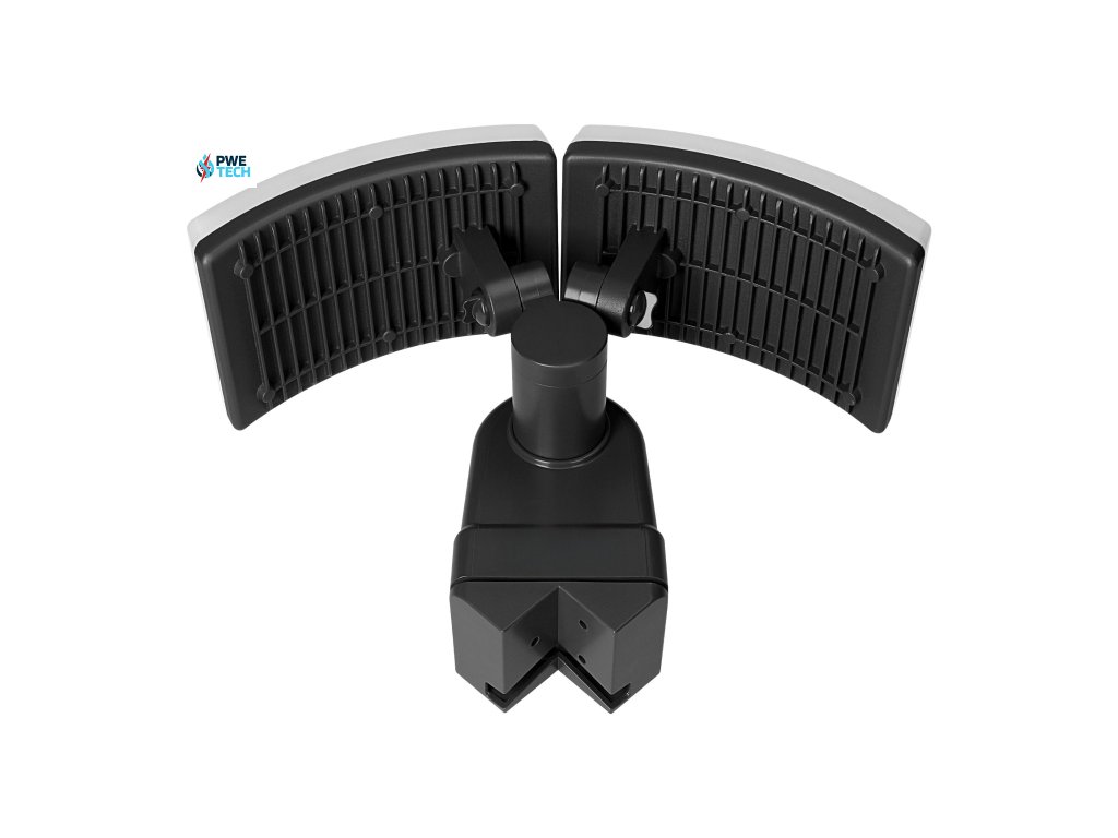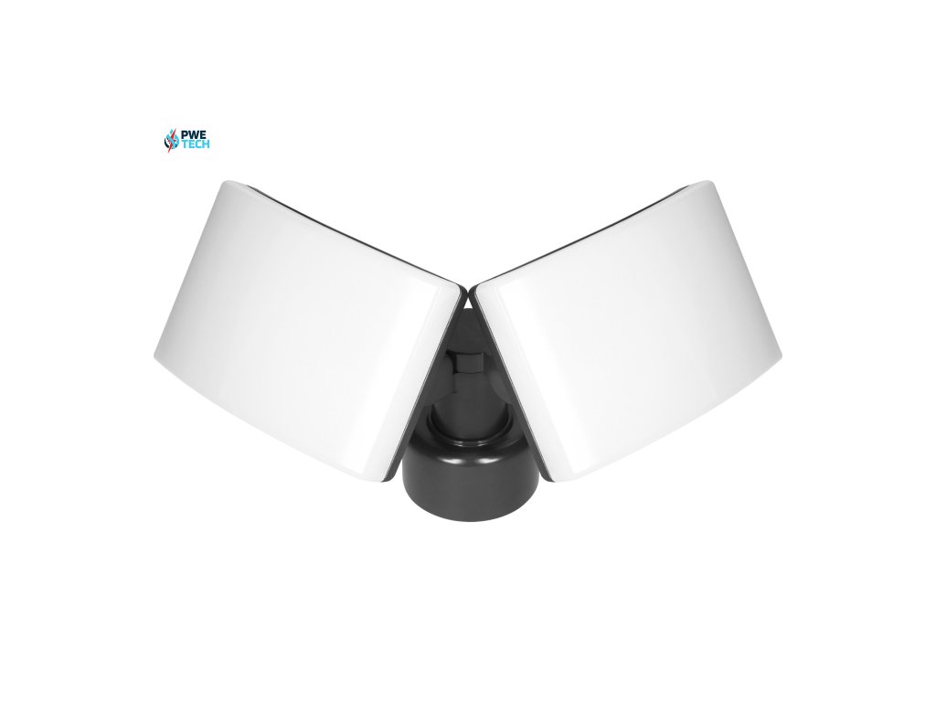 LED reflektor je napájaný na 230 V. Príjemná neutrálna farba 4000 K a svetelný tok 2x1600 lm dokonale osvetľujú príjazdovú cestu k pozemku, parkovisko, garáž alebo priestor okolo budovy. Okrem toho je reflektor vybavený pohyblivými tienidlami, ktoré umožňujú nastaviť uhol vyžarovania v rozsahu 90° horizontálne a 135° vertikálne, čo umožňuje presne prispôsobiť svetlo potrebám používateľa.