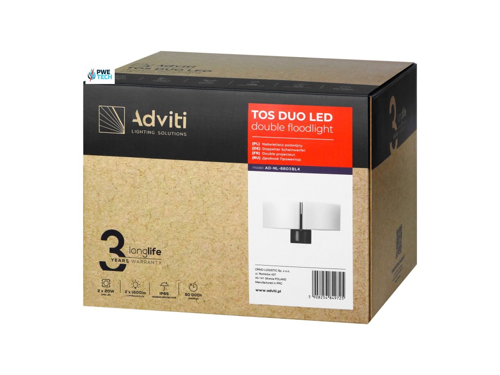 Dvojitý reflektor TOS DUO LED 2x20W, 2x1600lm, IP65, 4000K, čierny