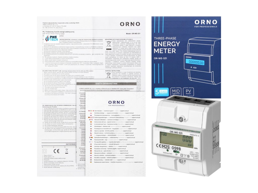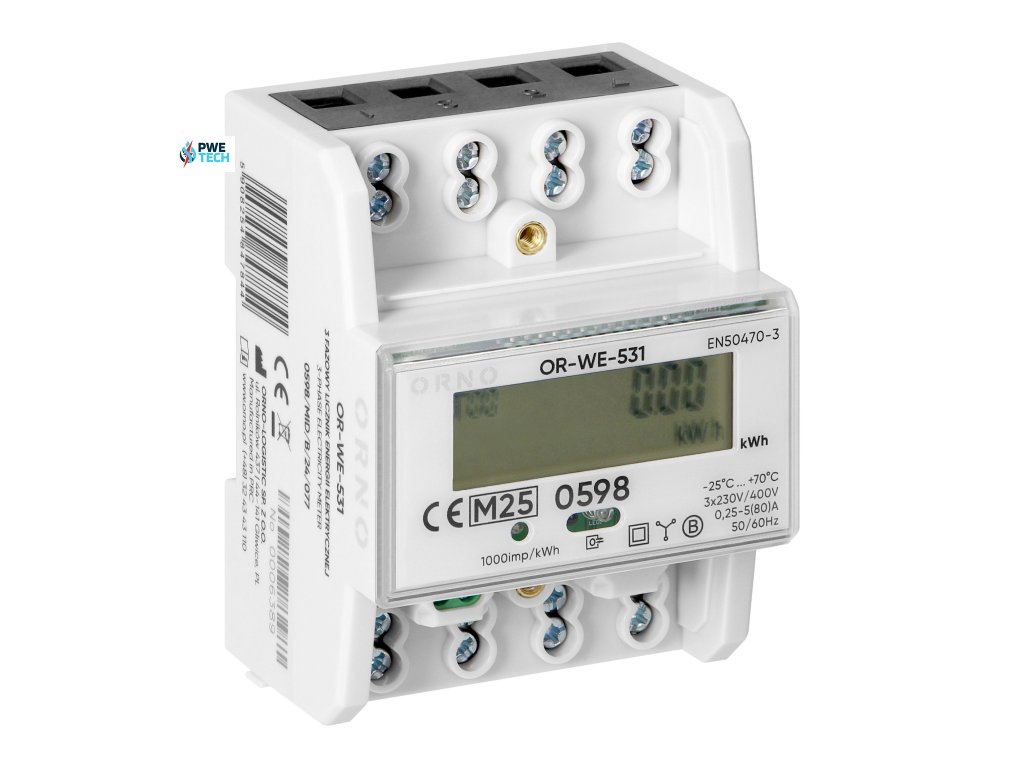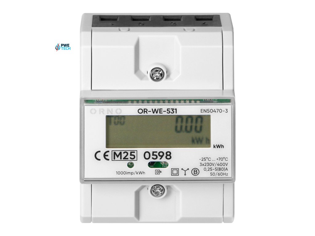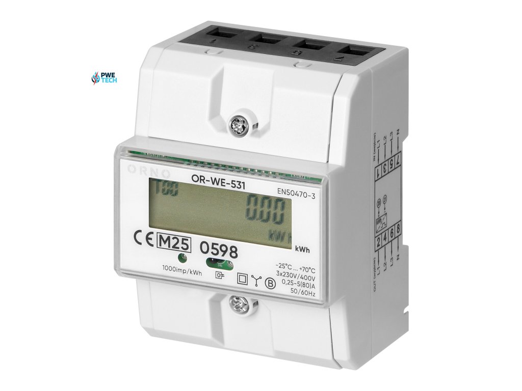 Elektromer trojfázový obojsmerný na DIN lištu ORNO OR-WE-531 0,25-80A MID reset
