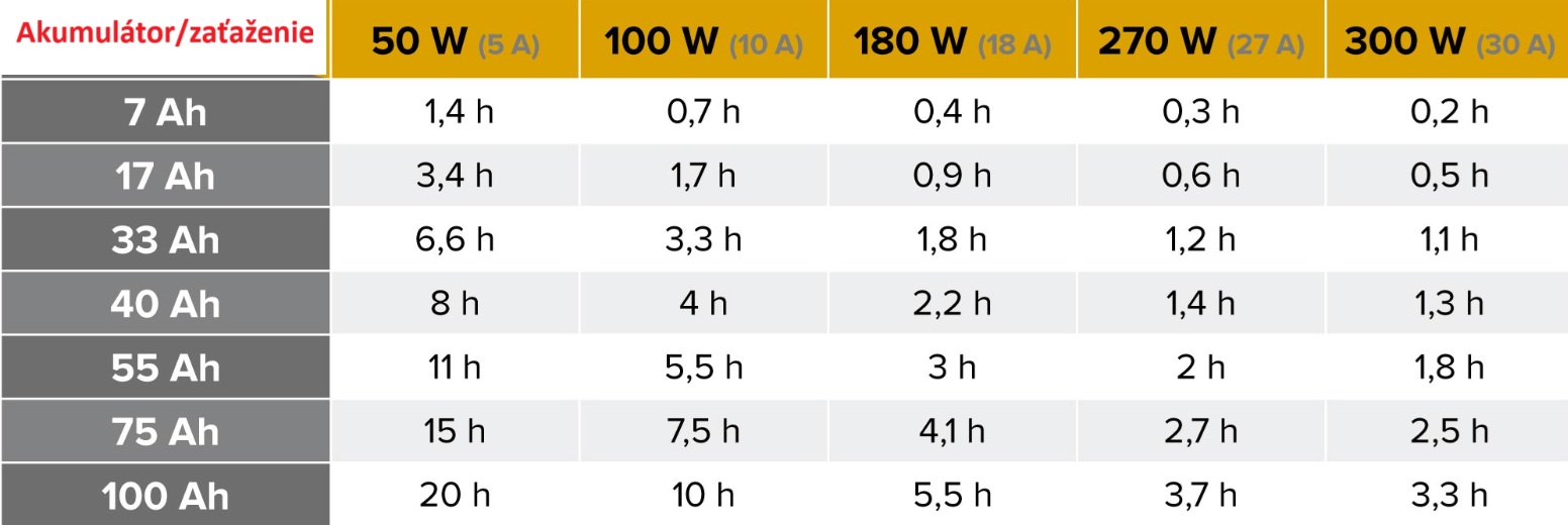 10 hodín: 100 Ah
