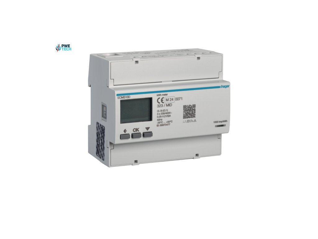 Hager Digitálny elektromer 3F, 2Tar, priamy do 125A, M-Bus, MID ECM310D