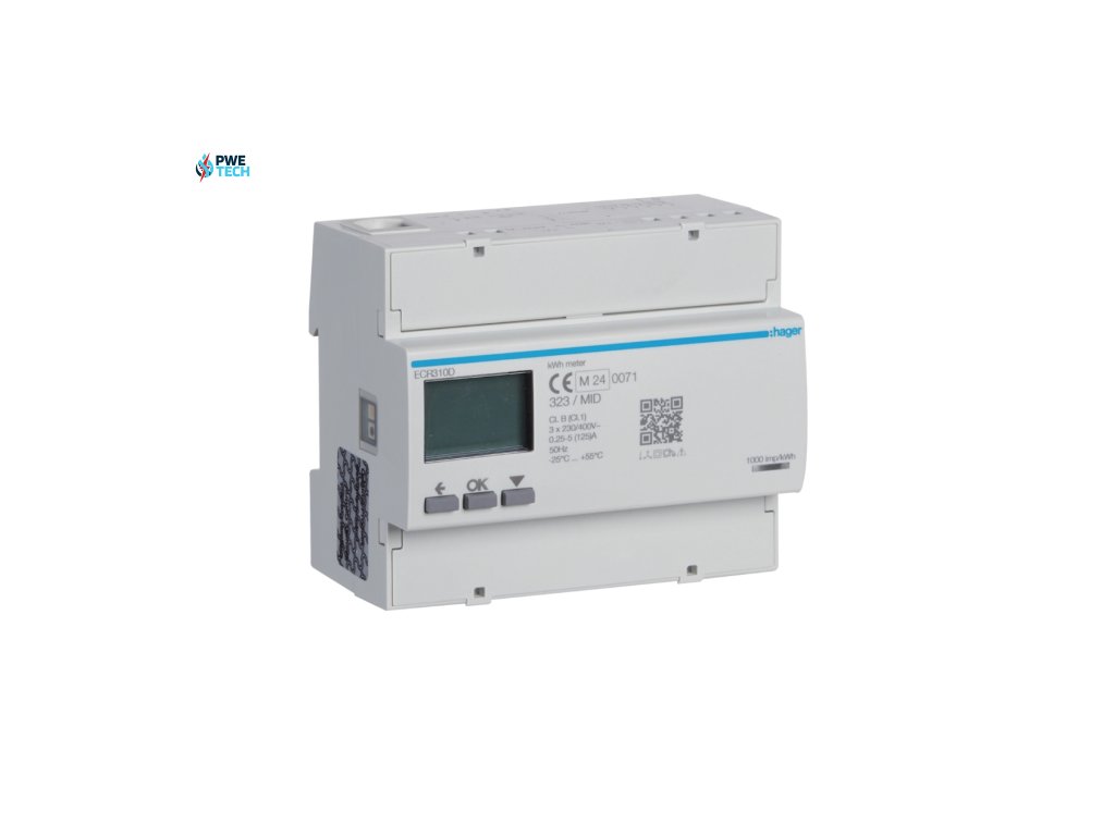 Hager Digitálny elektromer 3F, 2Tar, priamy do 125A, Modbus, MID ECR310D