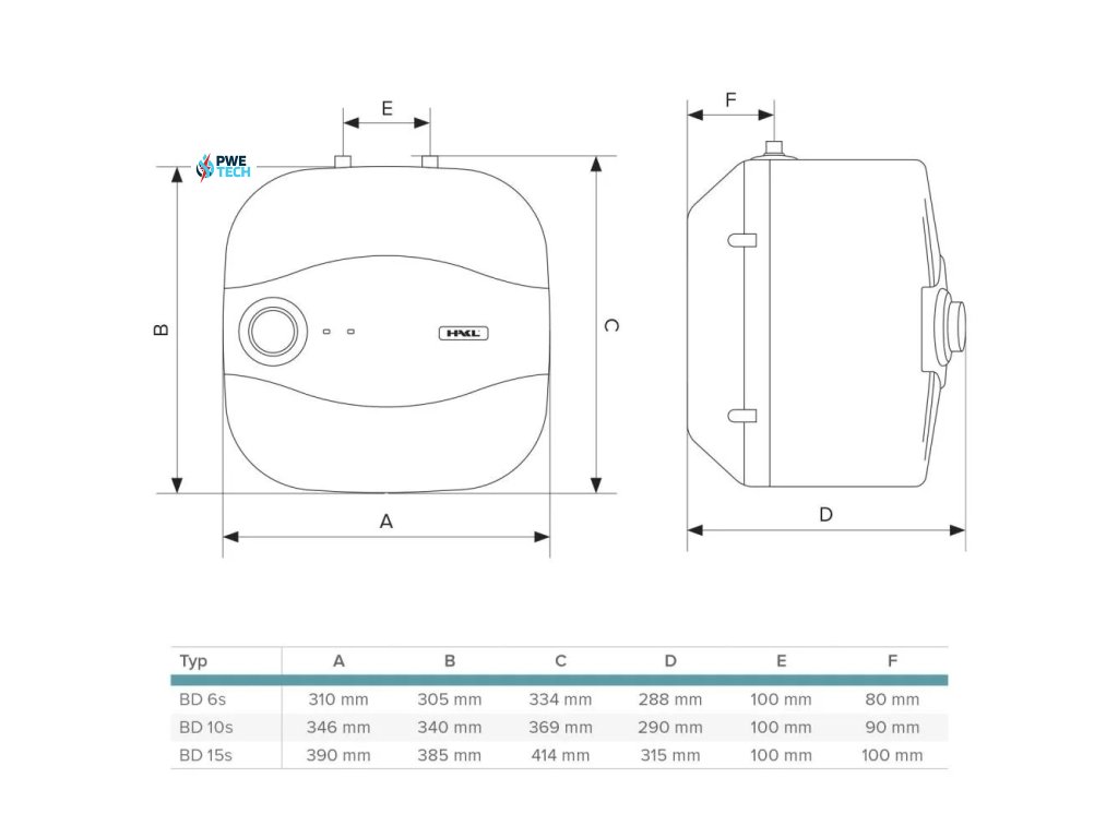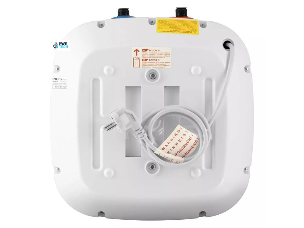 Elektrický zásobníkový ohrievač vody HAKL BD 6s s objemom vody 6 litrov je určený pre inštaláciu s pripojovacími vývodmi umiestnenými hore (opačné zapojenie ohrievač poškodí).