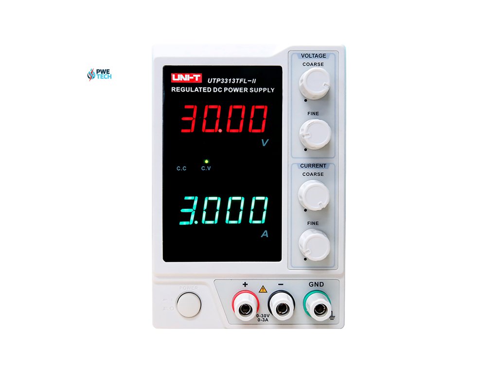 UTP3313TFL-II ponúka nastaviteľné výstupné napätie od 0 do 30 V s vynikajúcou reguláciou ±0,01 % + 3 mV, čo zaisťuje výnimočnú presnosť pri práci s citlivou elektronikou. Výstupný prúd je možné nastaviť od 0 do 3 A s vysokou presnosťou a reguláciou ±0,1 % + 5 mA. Napájací zdroj poskytuje výstupný výkon až 90 W, čo umožňuje napájať rôzne zariadenia.