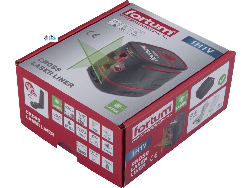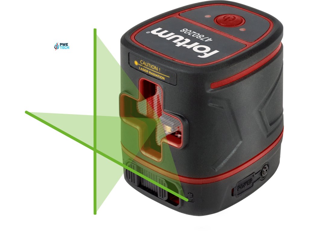 Laser líniový, krížový samonivelačný, zelený, 1H1V, Li-ion akumulátor, FORTUM 4780208