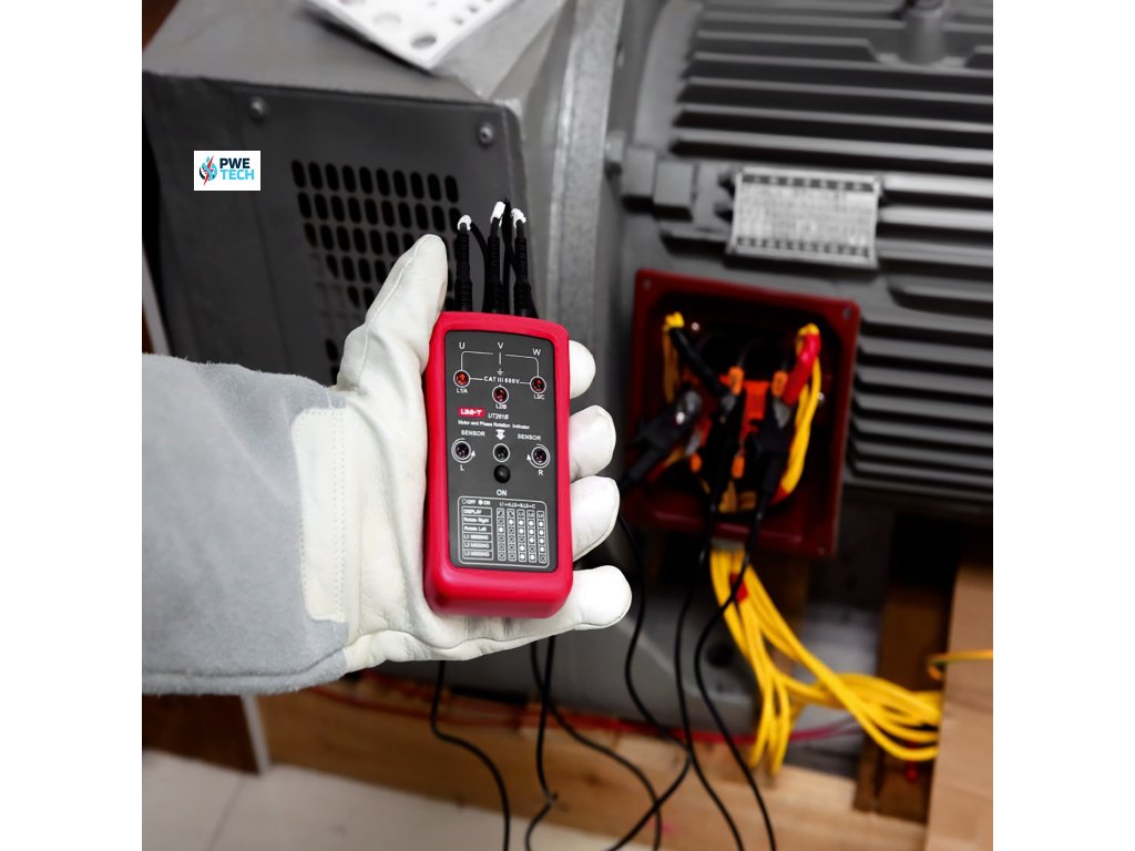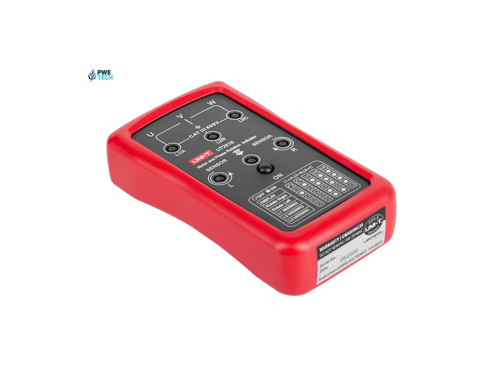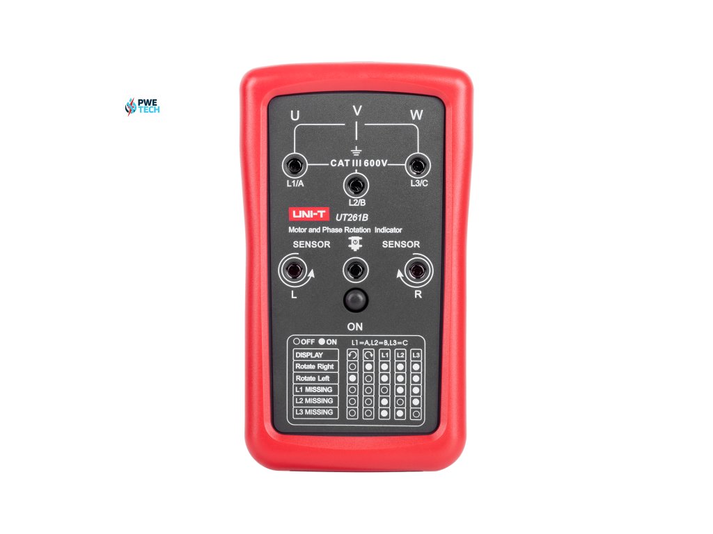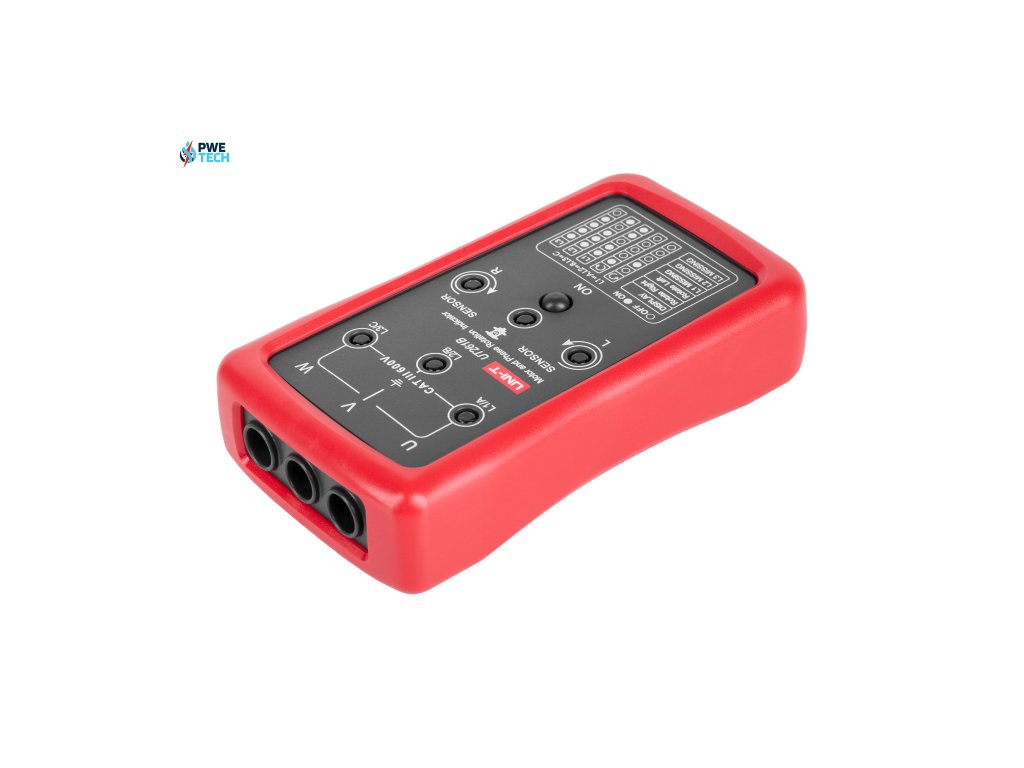 UT261B poskytuje presnú detekciu sledu fáz pomocou LED indikácie, čo uľahčuje identifikáciu správneho sledu fáz v trojfázových systémoch. Funkcia detekcie chýbajúcej fázy je tiež vizualizovaná pomocou LED diód, čo umožňuje rýchlo lokalizovať problémové oblasti. Okrem toho merač poskytuje indikáciu otáčok motora, čo je dôležité pre spustenie stroja alebo diagnostiku.