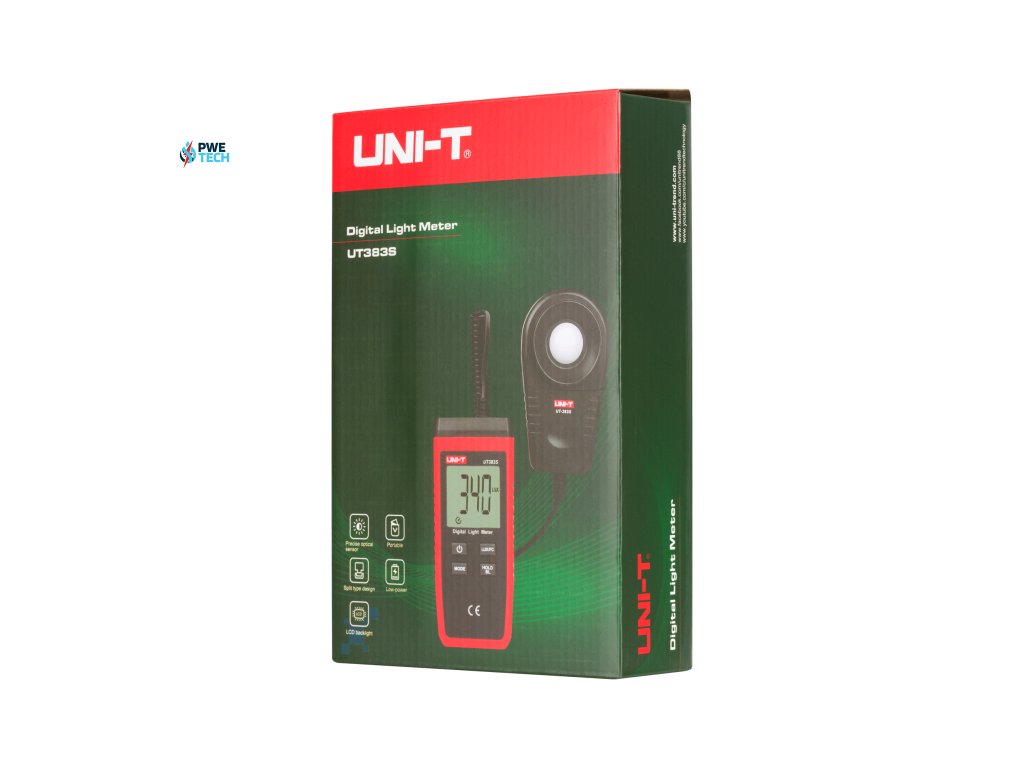 UT383S sa vyznačuje kompaktnými rozmermi 110 x 53 x 26 mm a hmotnosťou 300 g, vďaka čomu sa ľahko prenáša a používa. Zariadenie vykonáva 2 merania za sekundu, čo umožňuje rýchle a efektívne monitorovanie zmien intenzity svetla. Merač je napájaný tromi 1,5 V (R03) batériami, čo zaisťuje dlhotrvajúcu prevádzku bez nutnosti častej výmeny batérií.