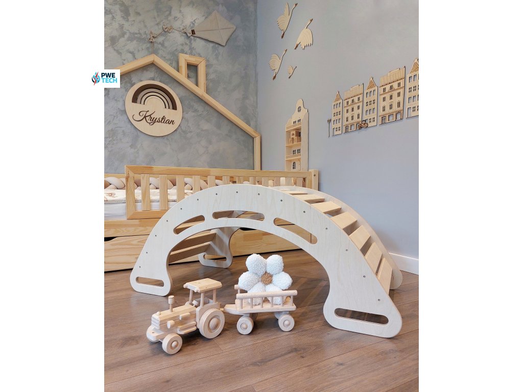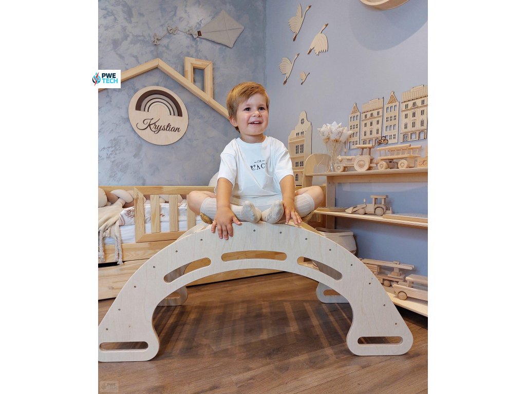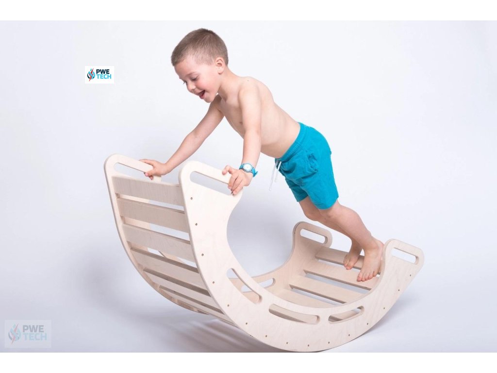 Naša XL drevená hojdačka, rovnako ako jeho väčší model - XXL rocker, je inšpirovaná filozofiou Montessori. Nie je to len hračka, ale predovšetkým pomôcka podporujúca zdravý vývoj vášho dieťaťa. Vďaka nej majú deti možnosť rozvíjať koordináciu, rovnováhu a silu, ako aj osvojiť si základné princípy fyziky, ako je pohyb a gravitácia. Hojdačka sa dá použiť ako rebrík, tunel alebo mostík, čo podnecuje detskú kreativitu a predstavivosť.