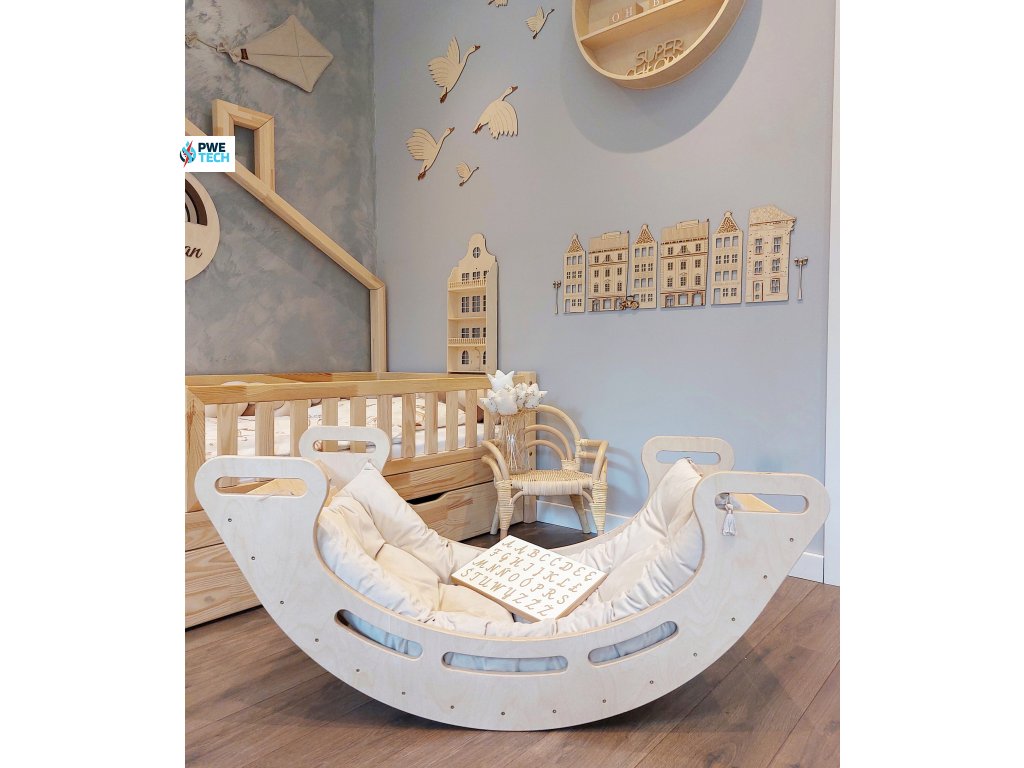Hľadáte hračku, ktorá rozvíja, zabáva a je bezpečná? Vyberte si nášu Montessori hojdačku! Navrhnuté s ohľadom na bezpečnosť. Ekologická a odolná. Na dlhé roky skvelej zábavy. Pre nezabudnuteľné chvíle vášho dieťaťa.