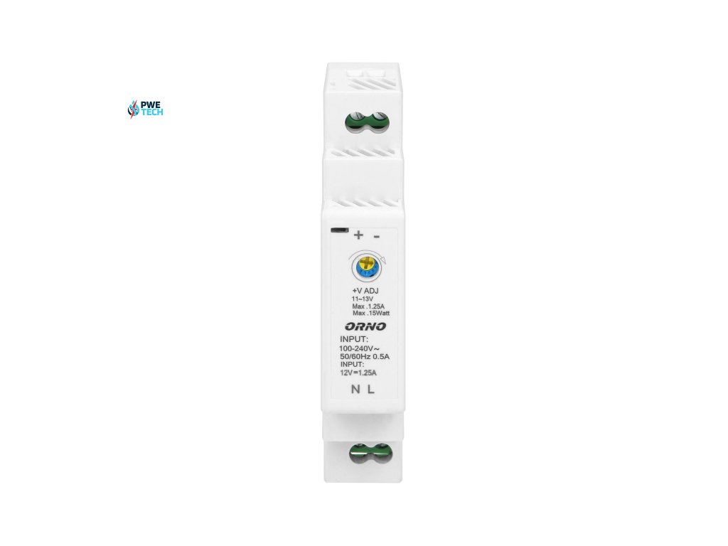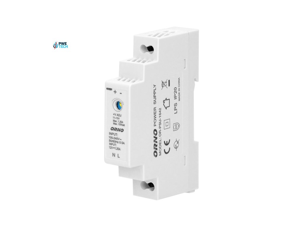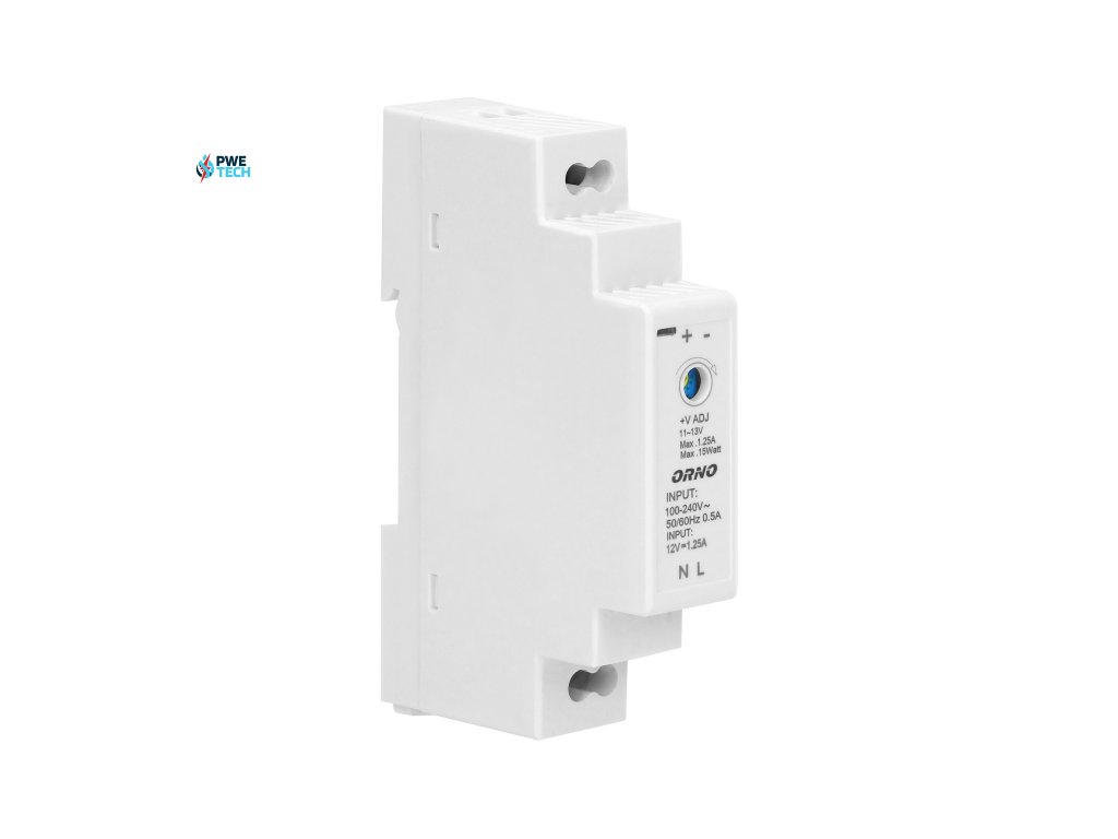 Vysoko účinný a spoľahlivý napájací zdroj na DIN lištu s maximálnym zaťažením 15 W a nastaviteľným výstupným napätím 12 V DC. Bol vyvinutý pre inštaláciu na DIN lištu a možno ho použiť v širokom spektre aplikácií, napr. v priemyselných aplikáciách, nízkonapäťových inštaláciách, ako sú CCTV alebo poplašné systémy. Tento napájací zdroj obsahuje: ochranu proti preťaženiu, prepäťovú ochranu a ochranu proti prepätiu. Integrovaná dióda indikuje aktiváciu zariadenia.