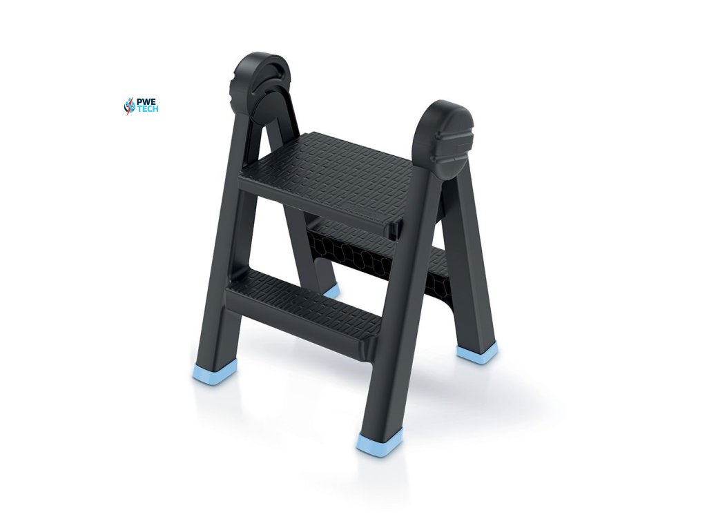 Obojstranné skladacie plastové schodíky TITAN LADDER čierne, modré prvky nosnosť 150kg KLD4565-2717C