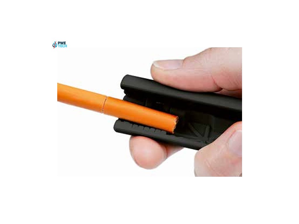 Odizolovanie vonkajšej izolácie a fóliového plášťa jedným nástrojom. Ideálne na odizolovanie dátových káblov s PVC izoláciou a tenkou izoláciou (napr. Cat. 5, Cat. 6, Cat. 7, krútená dvojlinka). Čepele s povlakom TiN. Pre prierez kábla s plášťom Ø 4,5 … 10 mm.