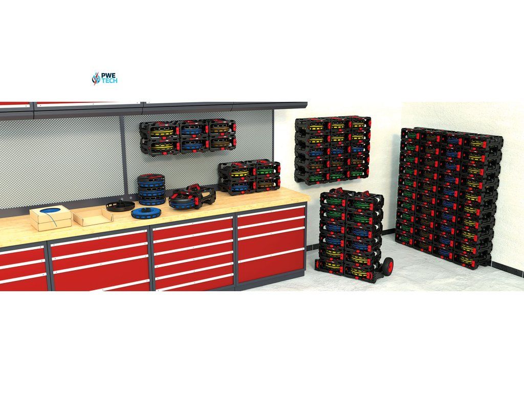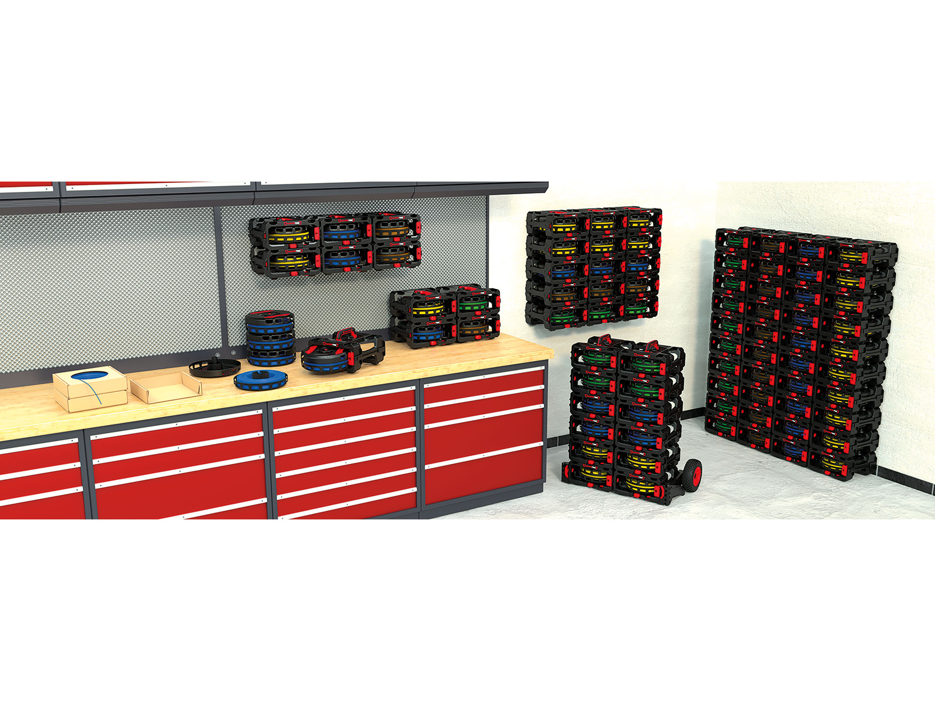 Poskytuje profesionálne a štruktúrované riešenie skladovania, výmeny a odvíjania samostatných vodičov alebo káblov vo zväzkoch s priemerom max. 26 cm.