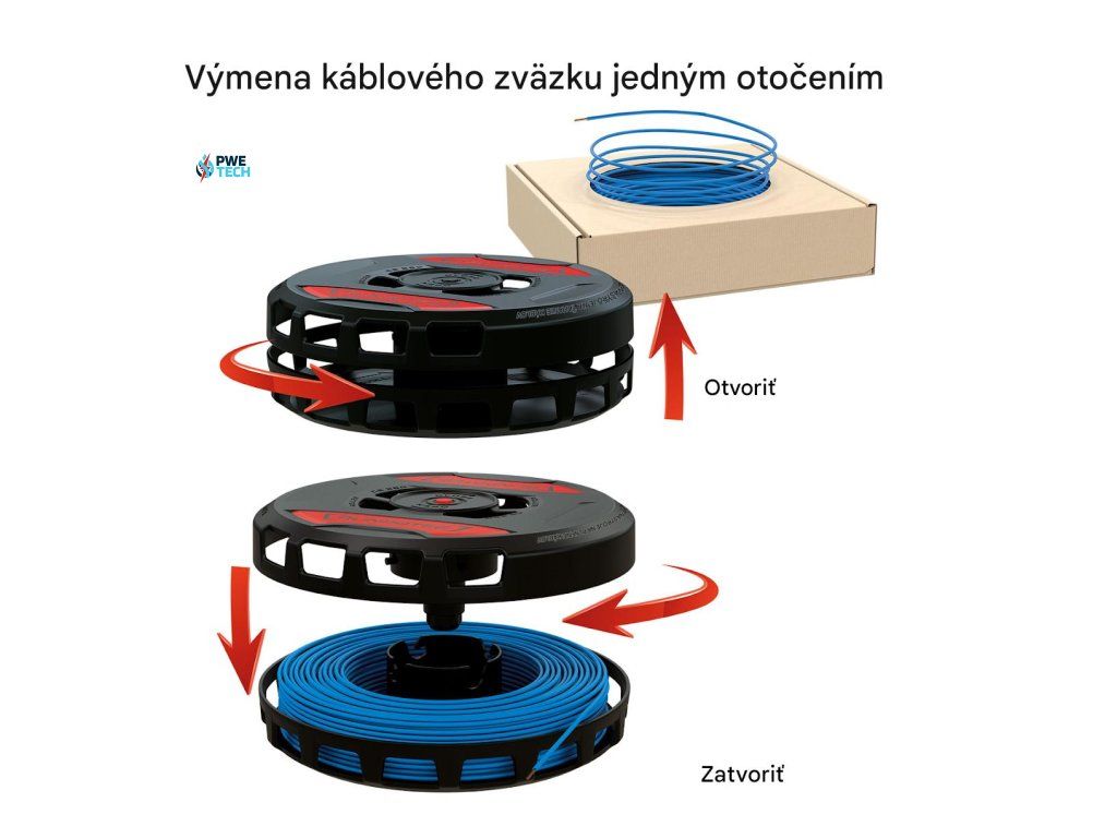- Vodiaci klip: Špeciálne vedenie zaisťuje rovnomerné odvíjanie káblov bez zamotávania.