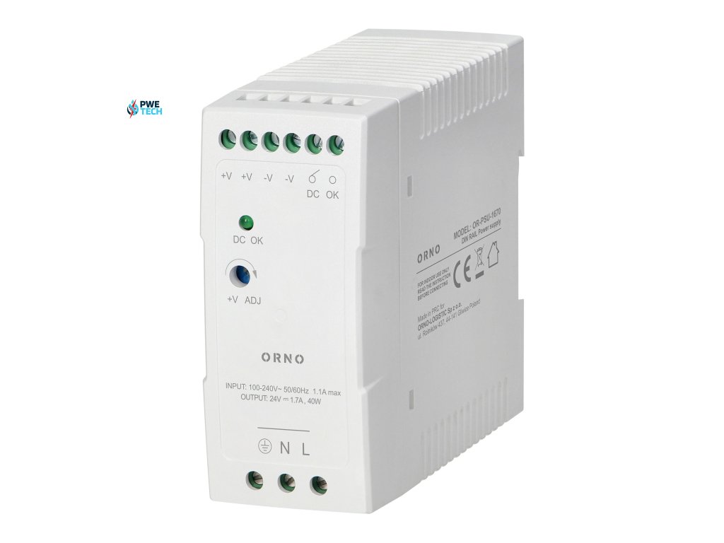Priemyselný napájací zdroj na DIN lištu, 24VDC, 1,7A, 40W, plastové puzdro