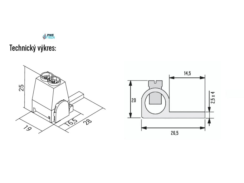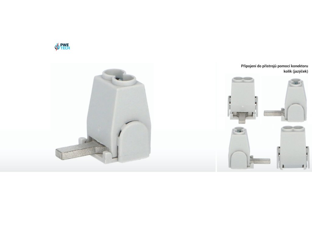 Svorka pripojovacia AS/35-SN - tvar konektora - jazýček (kolík), krytá, min. pripojiteľný prierez vodiča 6mm2 a max. 35mm2, menovitý prúd 130A.