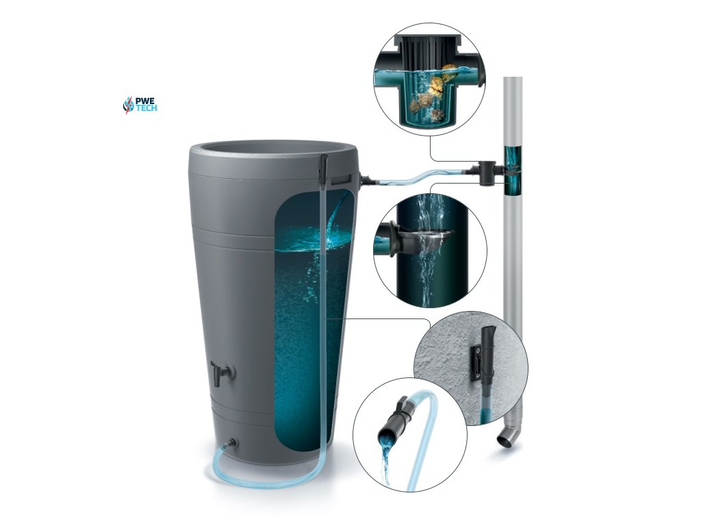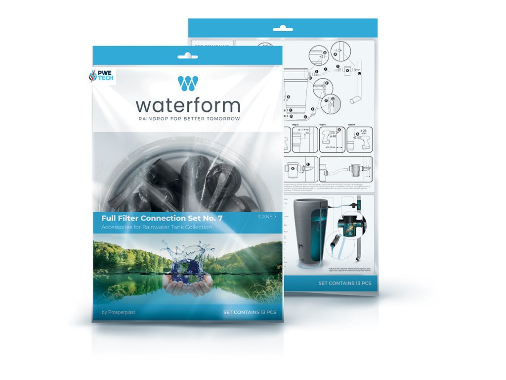 ICANS7 – Systém na prívod a odtok vody zhromaždenej v nádrži. Sada sa skladá z 13 prvkov: vykružovák do plastu; kohútik; univerzálne konektory; záhradná hadica na polievanie; vývod; záves; redukcia; hadica na pripojenie; externý filter; zachytávač vody z odkvapu. Sada je obohatená o externý filter na filtrovanie vody vstupujúcej do nádrže. Kompletná a všestranná sada, jednoduchý dizajn zaisťuje rýchlu inštaláciu.