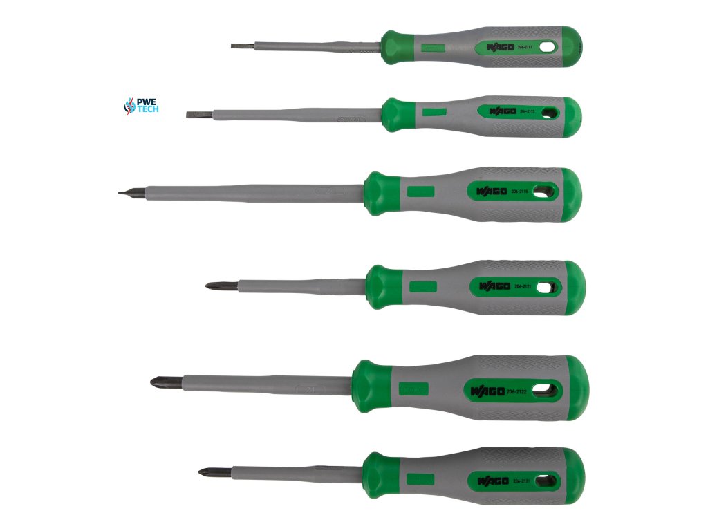 Sada WAGO 206-2101 obsahuje 6 kusov skrutkovačov VDE PH1; PH2; PZ1; 2,5; 3,5; 5,5;; 1000 V