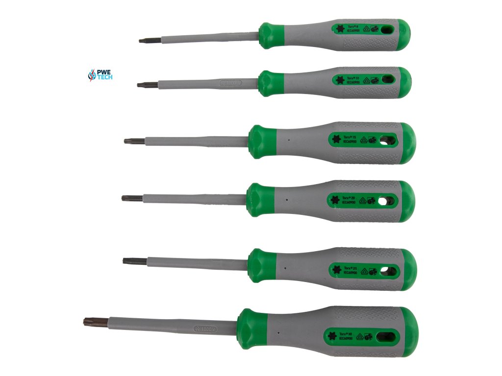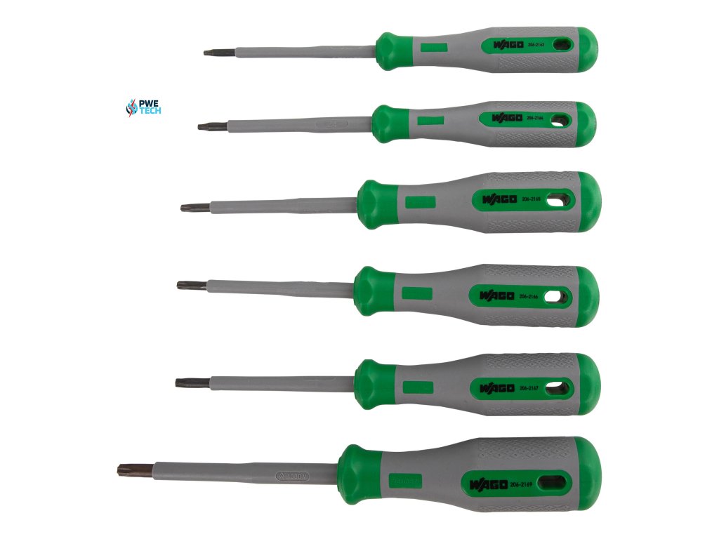 Sada WAGO 206-2102 obsahuje 6 kusov skrutkovačov VDE Torx®; T8; T10; T15; T20; T25; T30; VDE; 1000 V