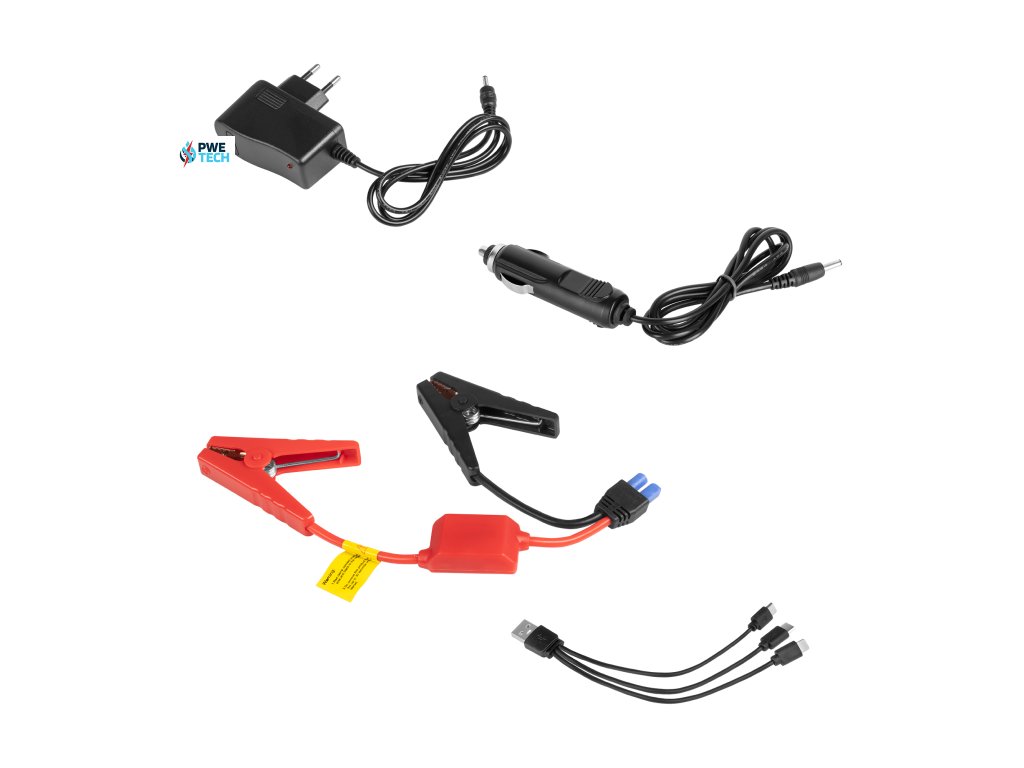 Obsah balenia: štartovacie káble, kábel 3 v 1 (Micro USB, USB-C, Lightning), nabíjačka do auta, sieťová nabíjačka, návod na použitie