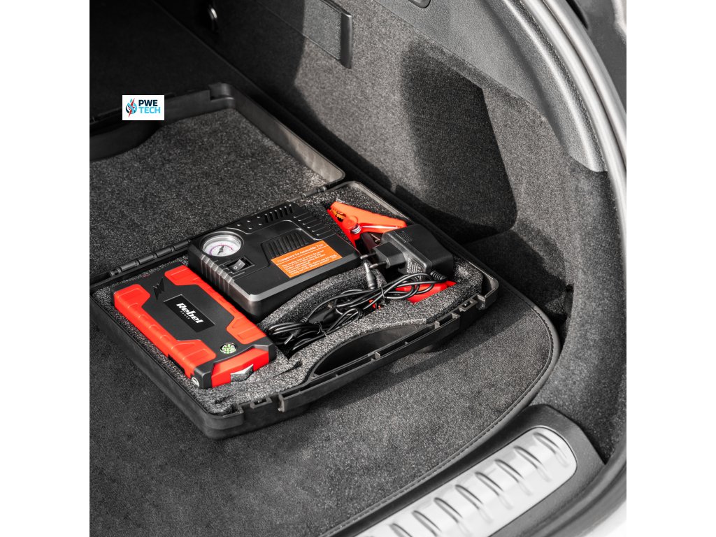 Štartovacia sada Rebel - powerbanka so štartovacími káblami a kompresorom URZ0967