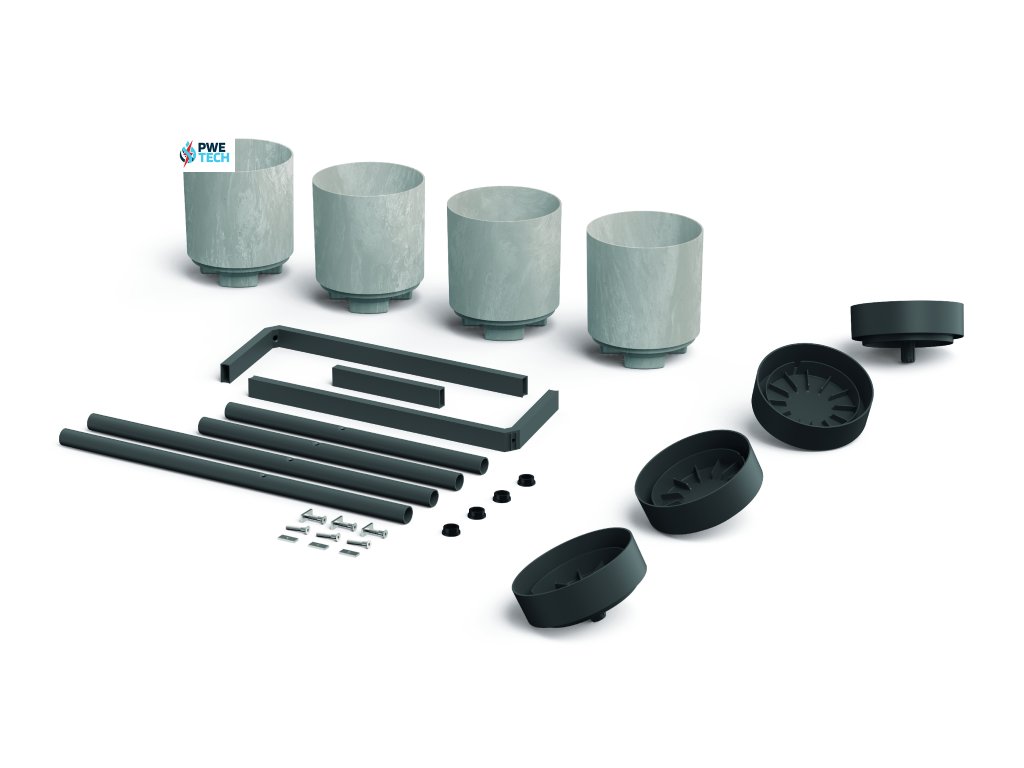 Sada obsahuje aj 4 kvetináče. Kvetináč má rozmer Výška : 16,5 cm, Priemer : 18 cm s objemom 4 litre.