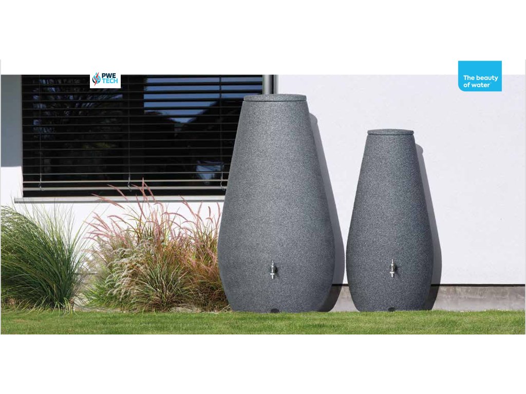 Nádrž na dažďovú vodu inšpirovaná tvarom kvapky vody s neutrálnymi farbami, ideálna do moderných záhrad. Vyrobené z kvalitných materiálov s použitím pokročilej technológie, ktorá zaisťuje tuhosť, odolnosť voči extrémnym teplotám a UV žiareniu