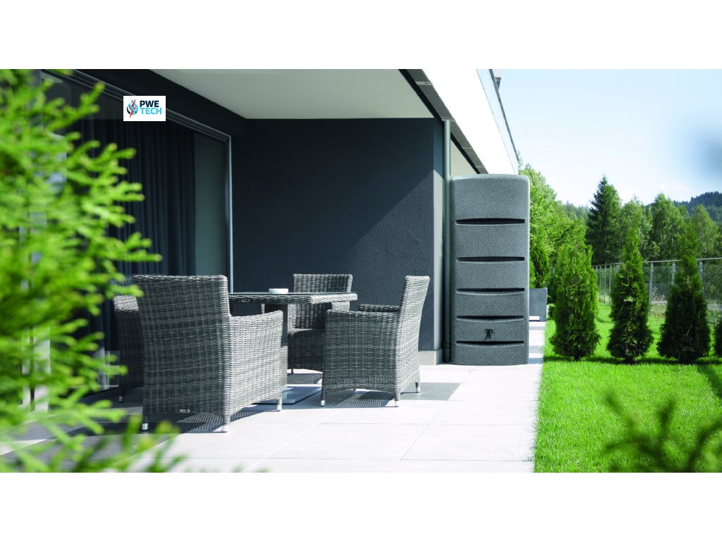 Nádrž TOWER STONE granit pojme 720 litrov dažďovej vody. Povrchová úprava nádrže pripomína omietkovú štruktúru, takže sa ľahko prispôsobí fasáde budov. Tvar bloku zvyšuje pevnosť a tuhosť a poskytuje odolnosť voči väčšine poveternostných podmienok.