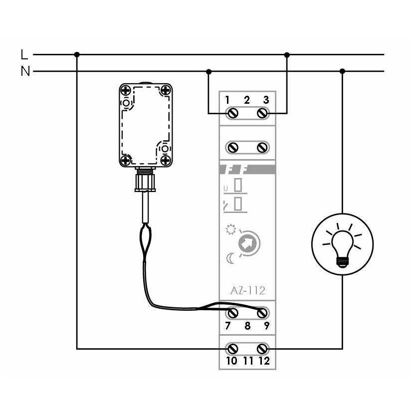Súmrakový spínač AZ-112 PLUS slúži na automatické zapínanie osvetlenia ulíc, vitrín obchodov, námestia atď. za súmraku a vypínanie tohto osvetlenia za svitania. Súmrakový spínač má možnosť nastavenia intenzity osvetlenia v rozsahu 2 až 1000 Lux. Ak dosiahne požadovanú úroveň zapnutia, čidlo sa aktivuje za 10 sekúnd. Ak dosiahne požadovanú úroveň vypnutia, čidlo sa deaktivuje za 20 sekúnd. Dôvodom pre oneskorenie je to, aby sa zabránilo zapínaniu a vypínaniu pri náhlych zmenách osvetlenia (svetlá áut, blesky atď.). Napájacie napätie 230 V 50-60Hz, max. spínaný prúd je 16 A. Riadiaca jednotka je vhodná pre montáž na nosnú DIN lištu do rozvádzača, externý snímač je vhodný pre montáž na povrch.