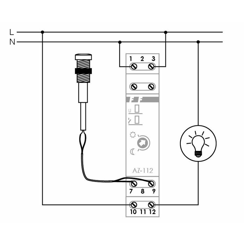 Súmrakový spínač AZ-112 slúži na automatické zapínanie osvetlenia ulíc, vitrín obchodov, námestia atď. za súmraku a vypínanie tohto osvetlenia za svitania. Súmrakový spínač má možnosť nastavenia intenzity osvetlenia v rozsahu 2 až 1000 Lux. Ak dosiahne požadovanú úroveň zapnutia, čidlo sa aktivuje za 10 sekúnd. Ak dosiahne požadovanú úroveň vypnutia, čidlo sa deaktivuje za 20 sekúnd. Dôvodom pre oneskorenie je to, aby sa zabránilo zapínaniu a vypínaniu pri náhlych zmenách osvetlenia (svetlá áut, blesky atď.). Napájacie napätie 230 V 50-60Hz, max. spínaný prúd je 16 A. Riadiaca jednotka je vhodná pre montáž na nosnú DIN lištu do rozvádzača, externý snímač je vhodný pre montáž do panelu (montáž do otvoru s priemerom 10 mm).