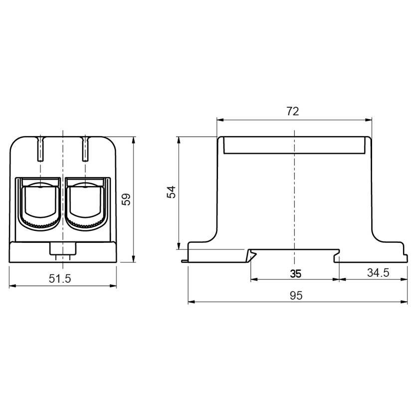 Svorka univerzálna dvojitá UK 150/2 PE, 320A, 2x150mm2 1pól., AL/CU, krytá, zeleno-žltá, na DIN a Montážnu dosku