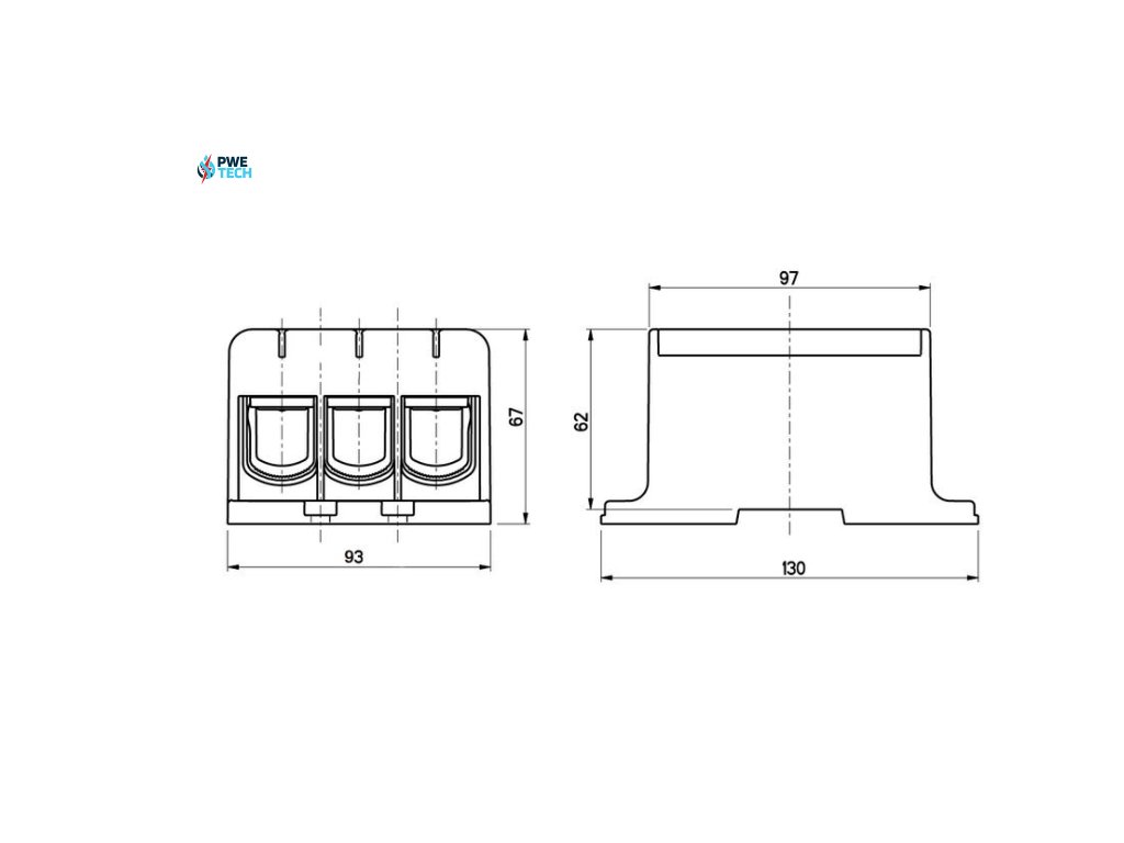 Svorka univerzálna trojitá UK 240/3 A, 425A, 3x240mm2 1pól., AL/CU, krytá, sivá, na DIN a Montážnu dosku