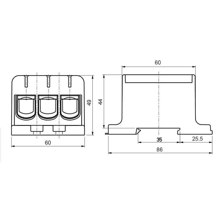 Svorka univerzálna trojitá UK 95/3 A, 245A, 3x95mm2 1pól., AL/CU, krytá, sivá, na DIN a Montážnu dosku