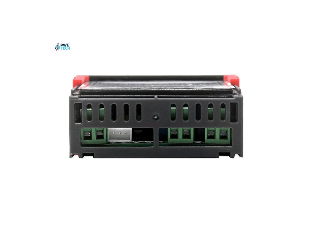 Regulátor je vybavený dvoma LED displejmi: jedným červeným pre teplotu a jedným modrým pre vlhkosť.