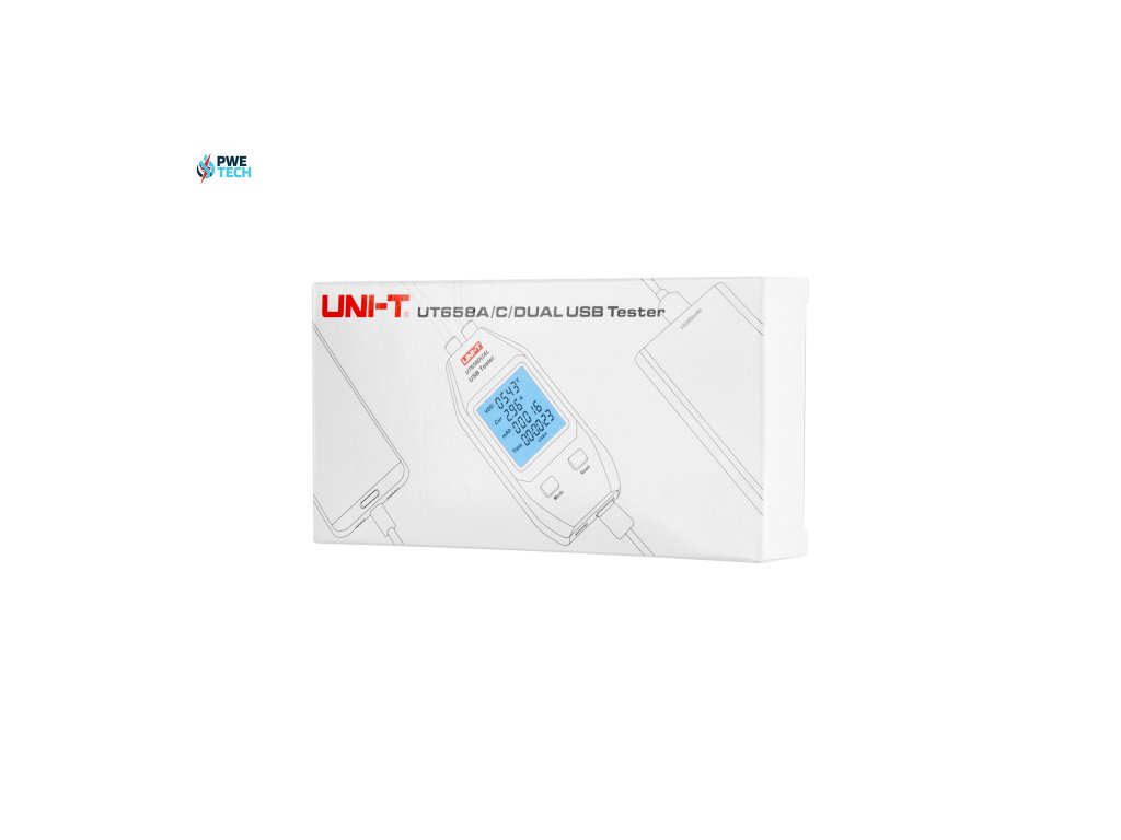 USB Tester UNI-T UT658 Dual je moderné a presné meracie zariadenie, navrhnuté pre každého, kto chce jednoducho, rýchlo a spoľahlivo overiť skutočné parametre nabíjačiek, USB káblov, powerbánk a akýchkoľvek ďalších zariadení napájaných cez porty USB-A a USB-C.