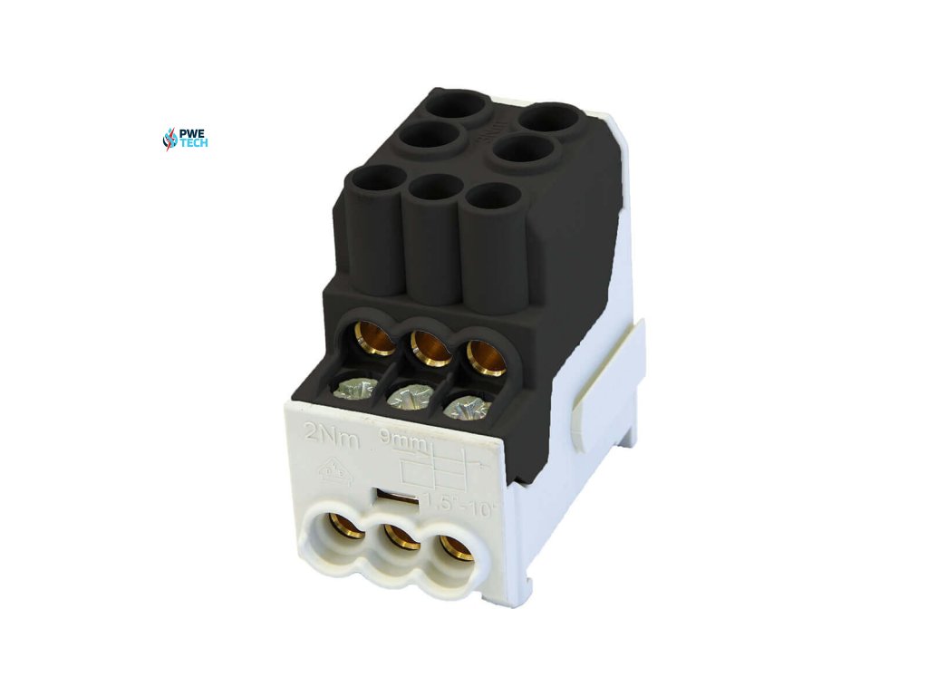 Rozbočovacia svorka 25mm2 SDB 100 čierna Al/Cu vstup 2x25mm2 výstup 6x10mm2