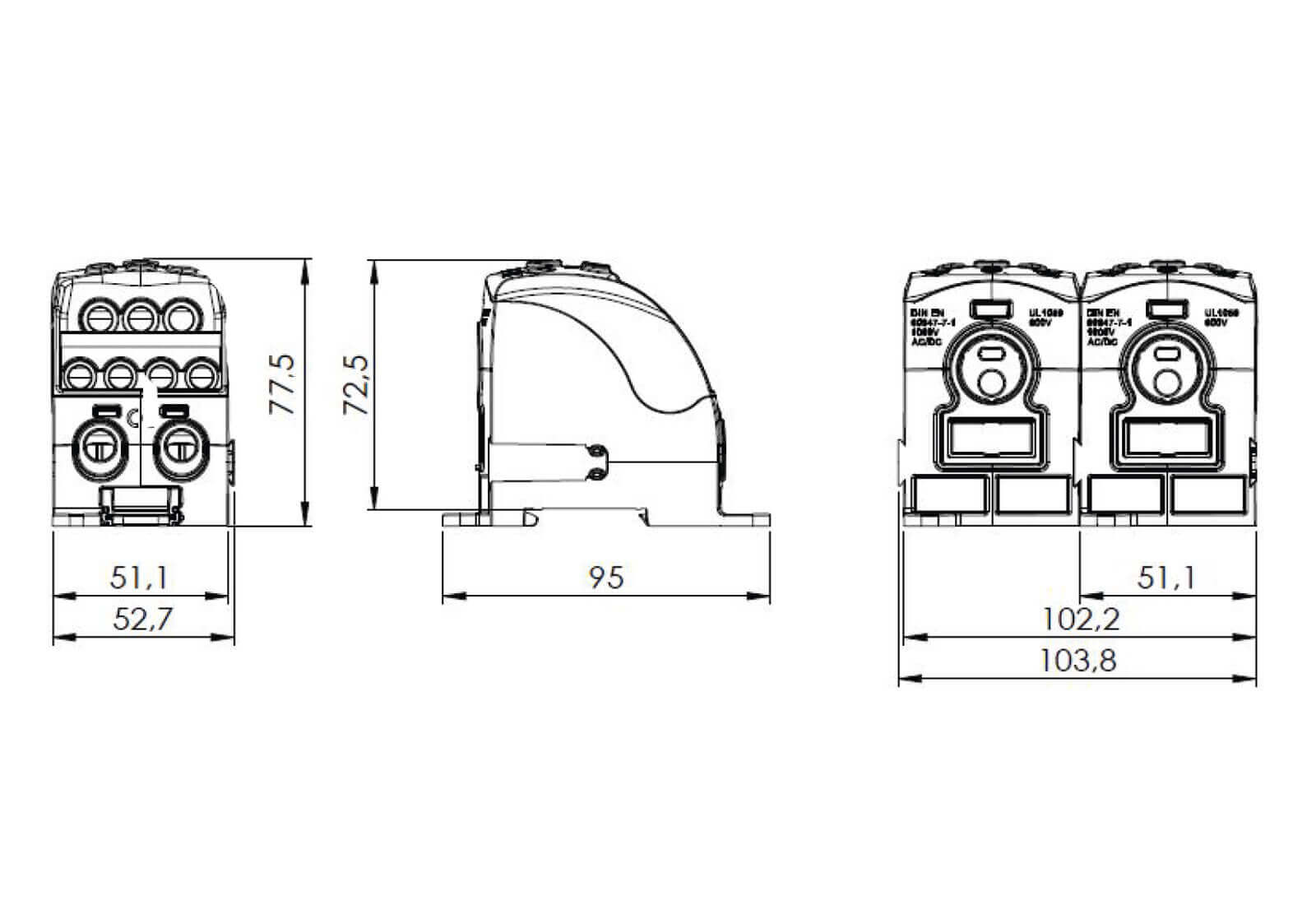 | Kategória: | Rozbočovacie kryté svorky Al/Cu SUB 25 až 185 mm2 |