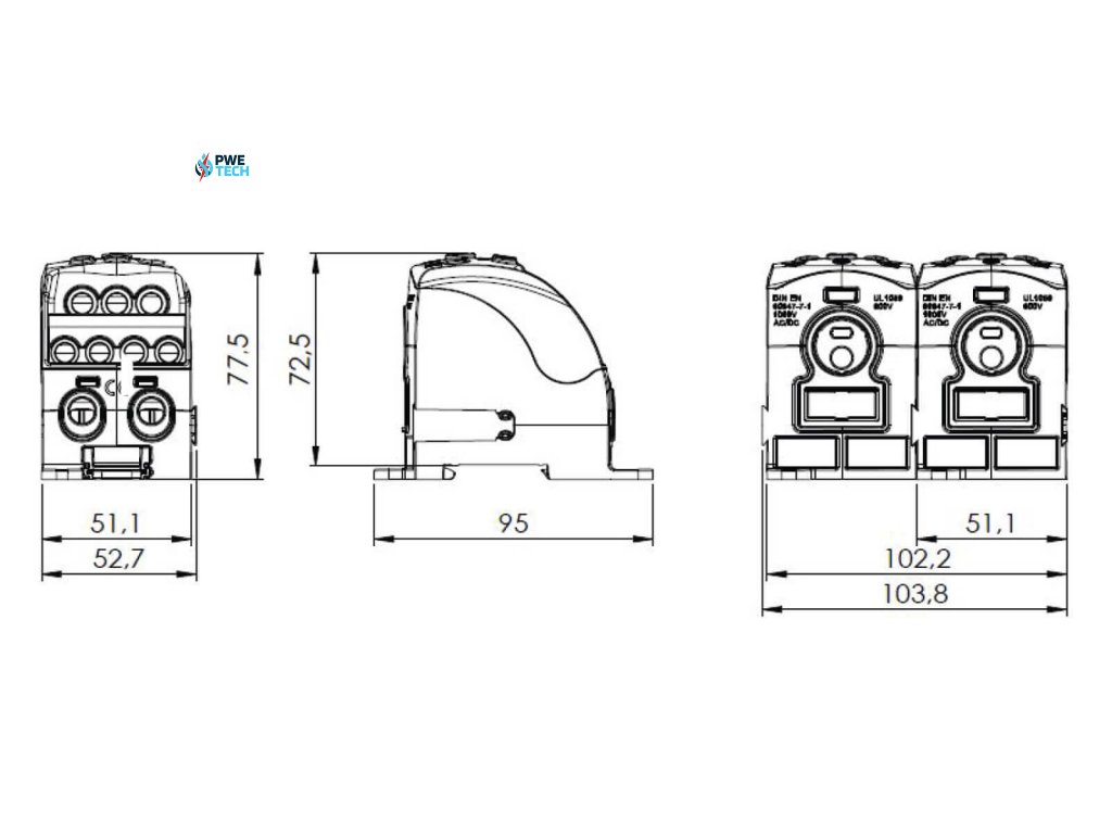 | Kategória: | Rozbočovacie kryté svorky Al/Cu SUB 25 až 185 mm2 |