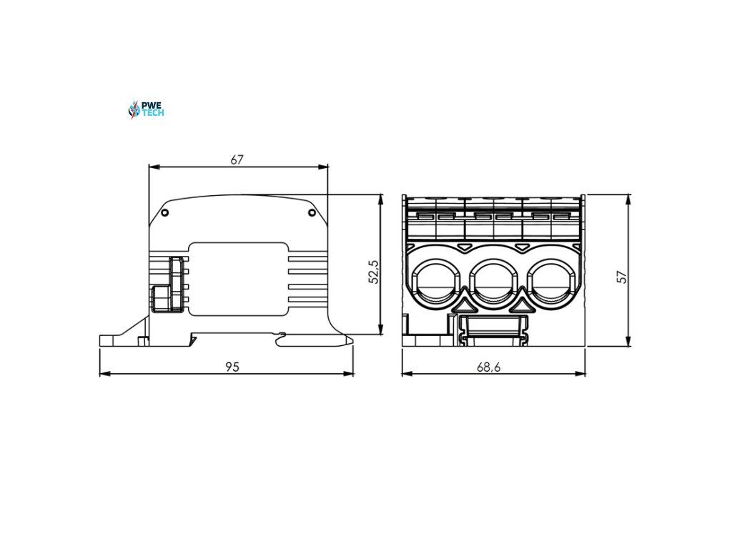 Rozsah pripojenia vodiča - 1.vstup : 16 - 95 mm2