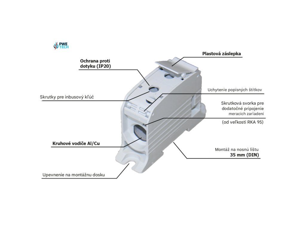 Univerzálna svorka Al/Cu RKA 95 1/6 L G šedá 232A 1pól 6x95mm2 na DIN lištu aj panel