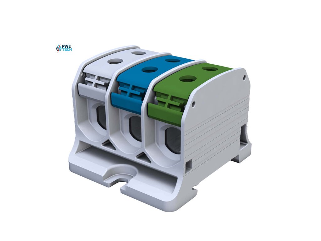 Univerzálna svorka SIMBLOCK STB 50-3X sivá/modrá/zelená 3x50mm2 Al/Cu trojpólová, 6 otvorov