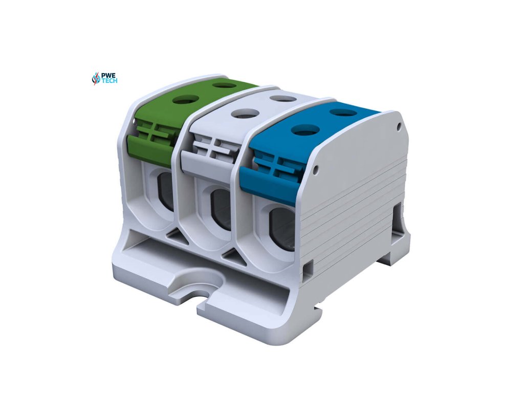 Univerzálna svorka SIMBLOCK STB 50-3X zelená/sivá/modrá Al/Cu 3x50mm2 trojpólová, 6 otvorov
