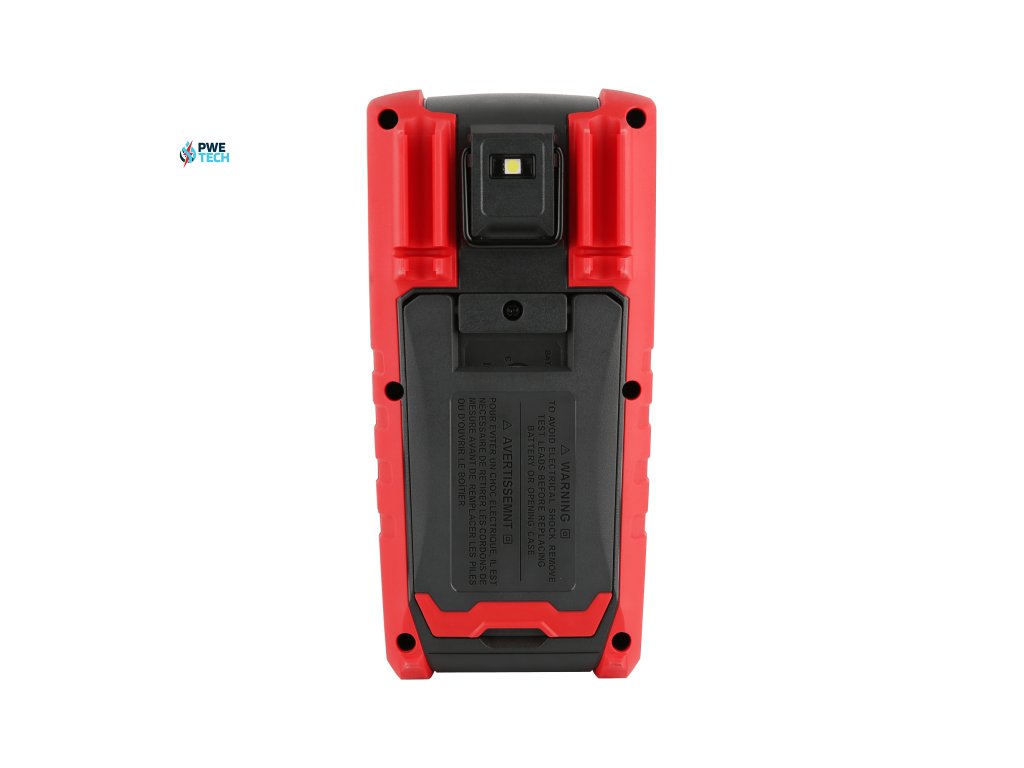 Podsvietený LCD displej a vstavané svietidlo uľahčujú používanie v slabo osvetlených priestoroch a robustný dizajn odolný voči poveternostným vplyvom robí merač ideálnym pre použitie v dielni aj na stavenisku.